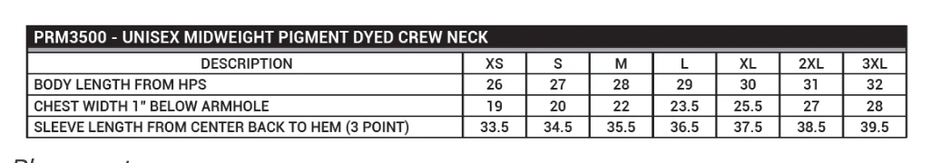 8" creme colored embroidery on chest